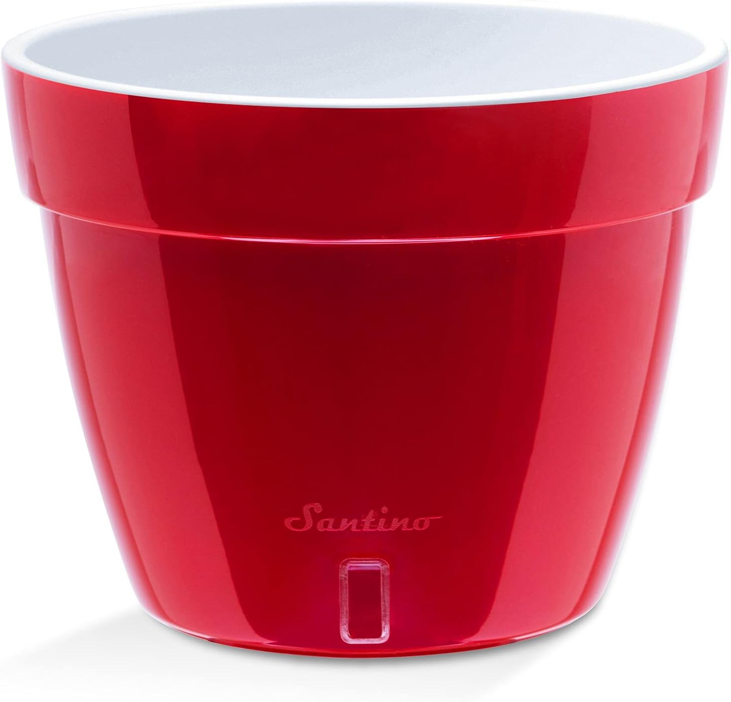 Santino ASTINO 11.8 Inch Self Watering Planter Red-Pearl/White for Indoor Plants - Premium Quality Plastic Pot with Water Level Indicator for All House Herbs, Plants, African Violets and Dahlias