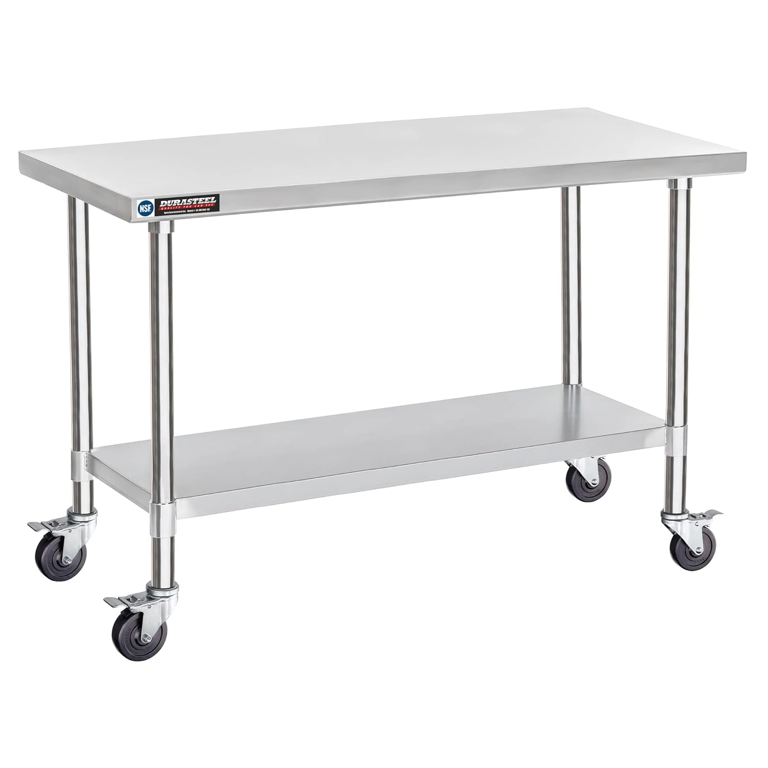 DuraSteel 24x60 NSF Stainless Steel Cart - Heavy Duty Food Prep Table with Undershelf - Rolling Kitchen Island on Wheels for Commercial Restaurant Kitchen, Garage, Outdoor Cooking, BBQ Grill, Counter