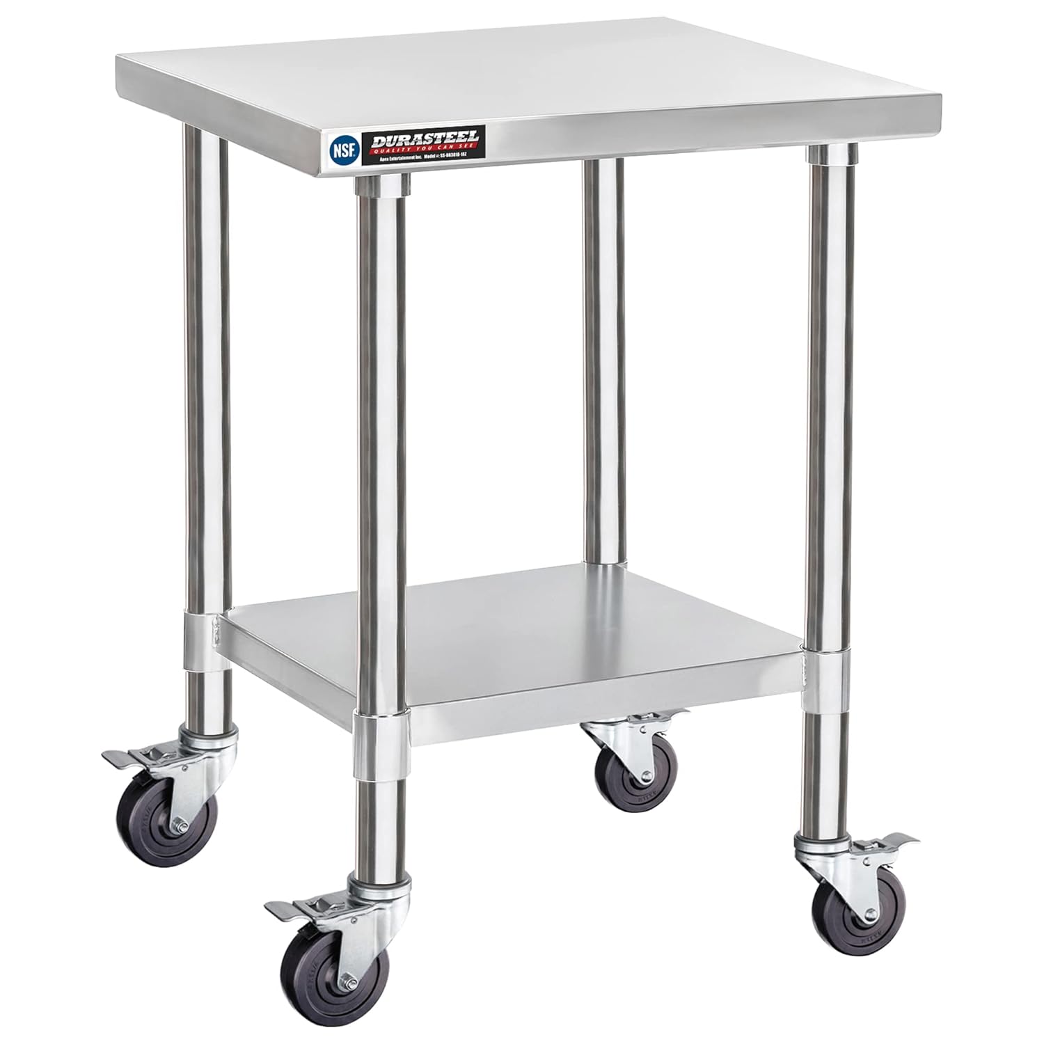 DuraSteel 30x18 NSF Stainless Steel Cart Work Table - Heavy Duty Rolling Food Prep Table - Metal Utility Cart on Wheels Caster, Grill Stand Microwave Outdoor Kitchen Tables Countertop Island Large Top