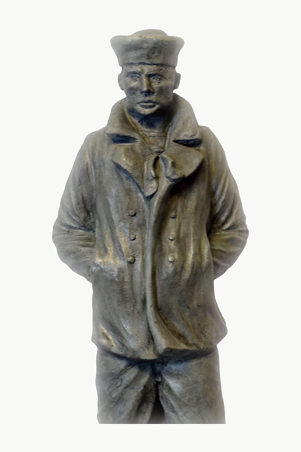 - Sailor Figure is dressed in sailor Suit with a seabag behind.