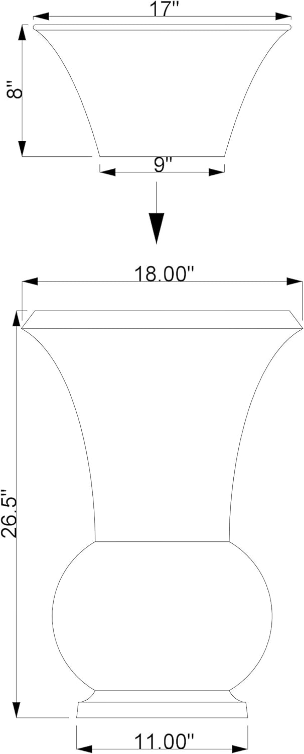 - Large Size: This planter is 18 inches square at the widest point and 26 inches high.
