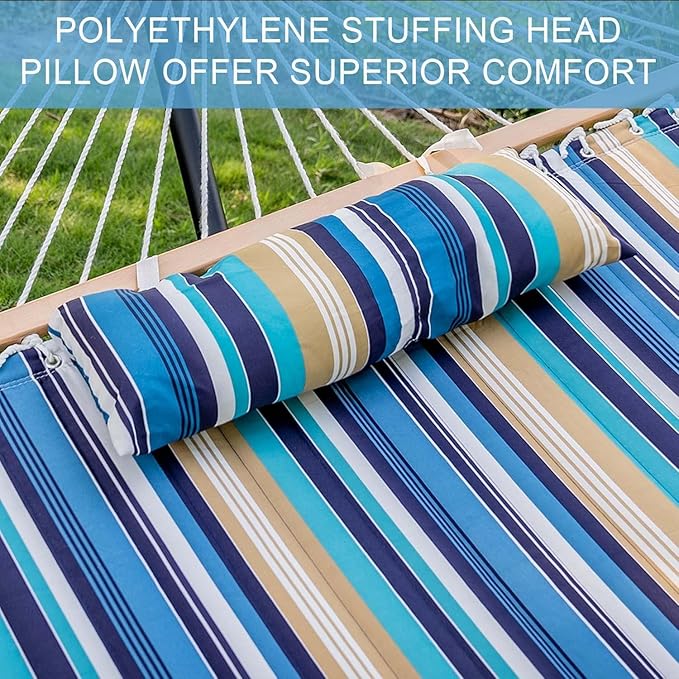 Lazy Daze Hammocks 12 FT Quilted Fabric Double Hammock with Spreader Bars and Detachable Pillow, 450lbs Weight Capacity
