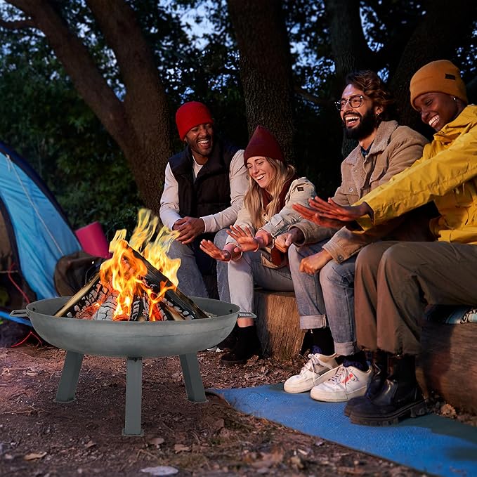 - PORTABLE DESIGN: Take this outdoor wood-burning fire pit with you to the beach, campground, or backyard with convenient handles on each side that make it easy to transport. It comes with three 10" slanted legs for extra stability.