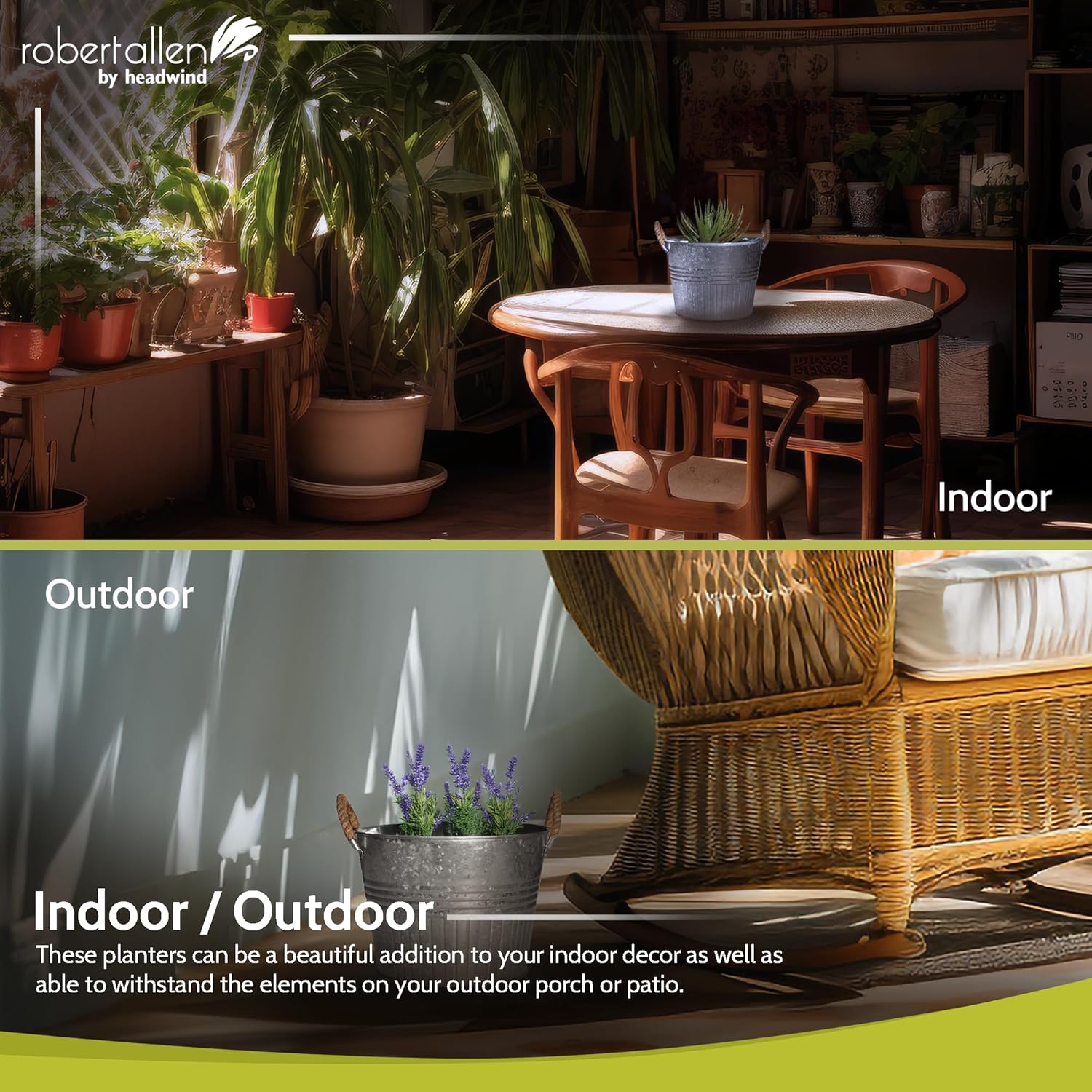 - 🧺Our round galvanized planters Built to last, feature corrosion-resistant galvanized steel & sturdy rope handles. They’re not just metal bucket planter —they’re strong, weatherproof, & easy to move, making them ideal for everyday use.
