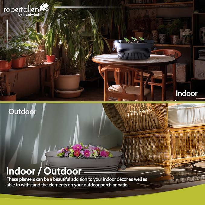 - 📏Crafted from durable, lightweight metal tub, this planter 14 inches in diameter, offering ample space for medium to large plants. The basin-style design with built-in handles makes it easy to move.