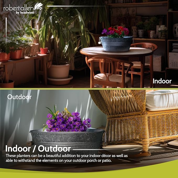 - 🏆Unlike generic planters , Headwind galvanized tub large are known for their weather-resistant finishes, premium craftsmanship, & timeless design. This decorative metal bucket planter combines durability with aesthetic appeal.