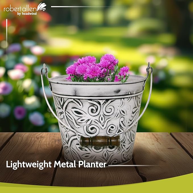 - 🪶You’re getting an 8-inch plant pot floral rustic white galvanized metal planter with a wooden handle—designed to add vintage charm and floral elegance to your indoor planter or outdoor display.