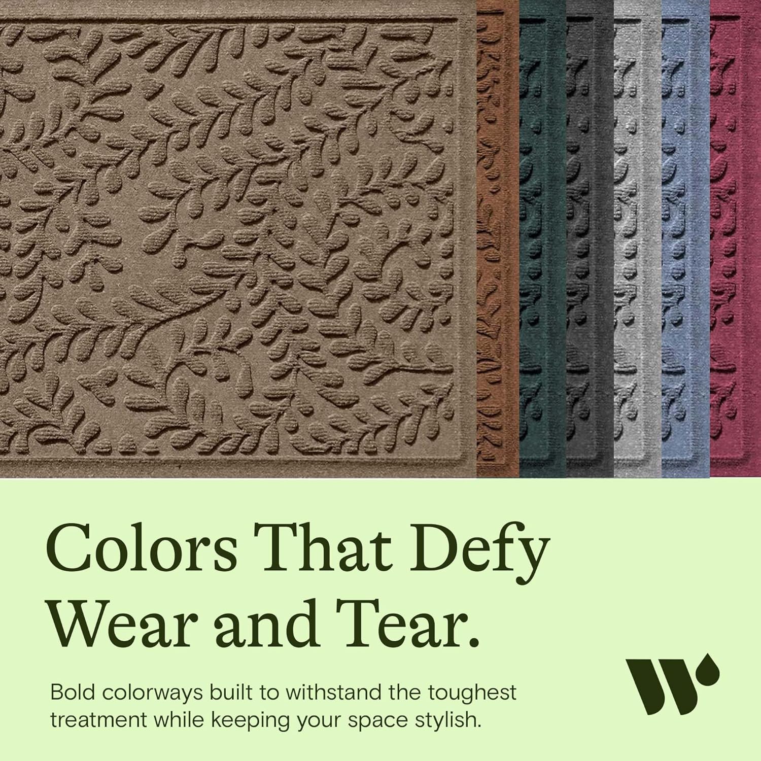 - EFFICIENT WATER TRAPPING DESIGN: The ridged floral design and rubber border of this mud catching mat trap up to 1 gallon of water per square yard, protecting floors from dirt, moisture, and damage. The bi-level design resists crushing for long-lasting durability.