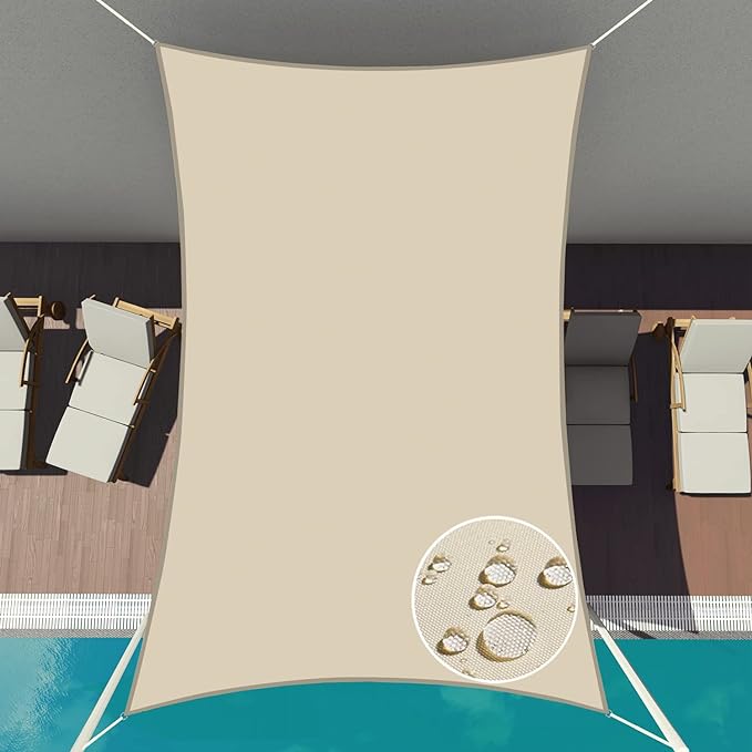 Patio Paradise 15' x 23' Sun Shade Sail Waterproof Beige Rectangle Shade Canopy UV Block Tarp Cloth Outdoor Patio Cover for Garden Backyard Deck Awning