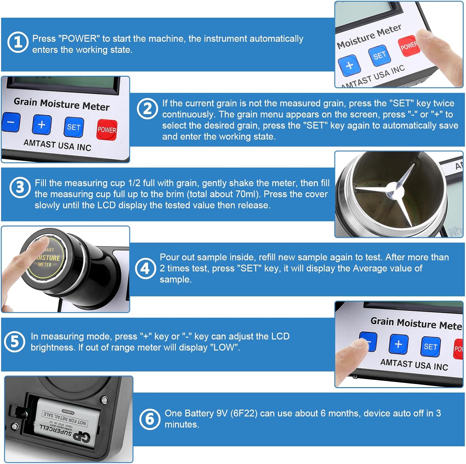 - ššš ššššš ššššššššššš ā Our seed moisture tester is engineered for long-lasting use, operating on a 9V battery that lasts up to one year. It features an automatic shutdown function to conserve battery life, making it an economical choice for continuous use. Whether testing flaxseed, almonds, or cashews, this tester ensures that users can efficiently manage their resources while obtaining precise moisture readings with minimal power consumption.
