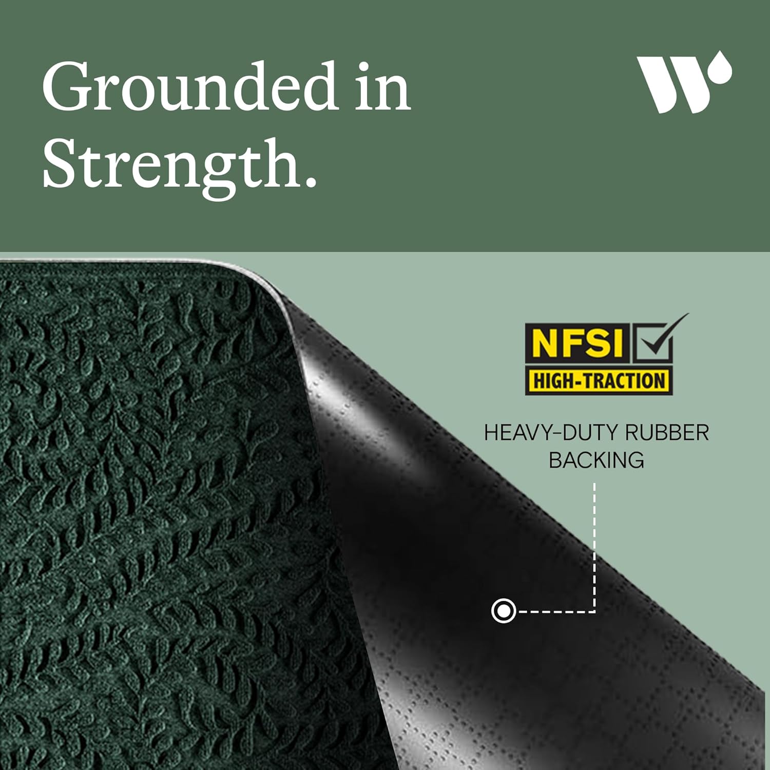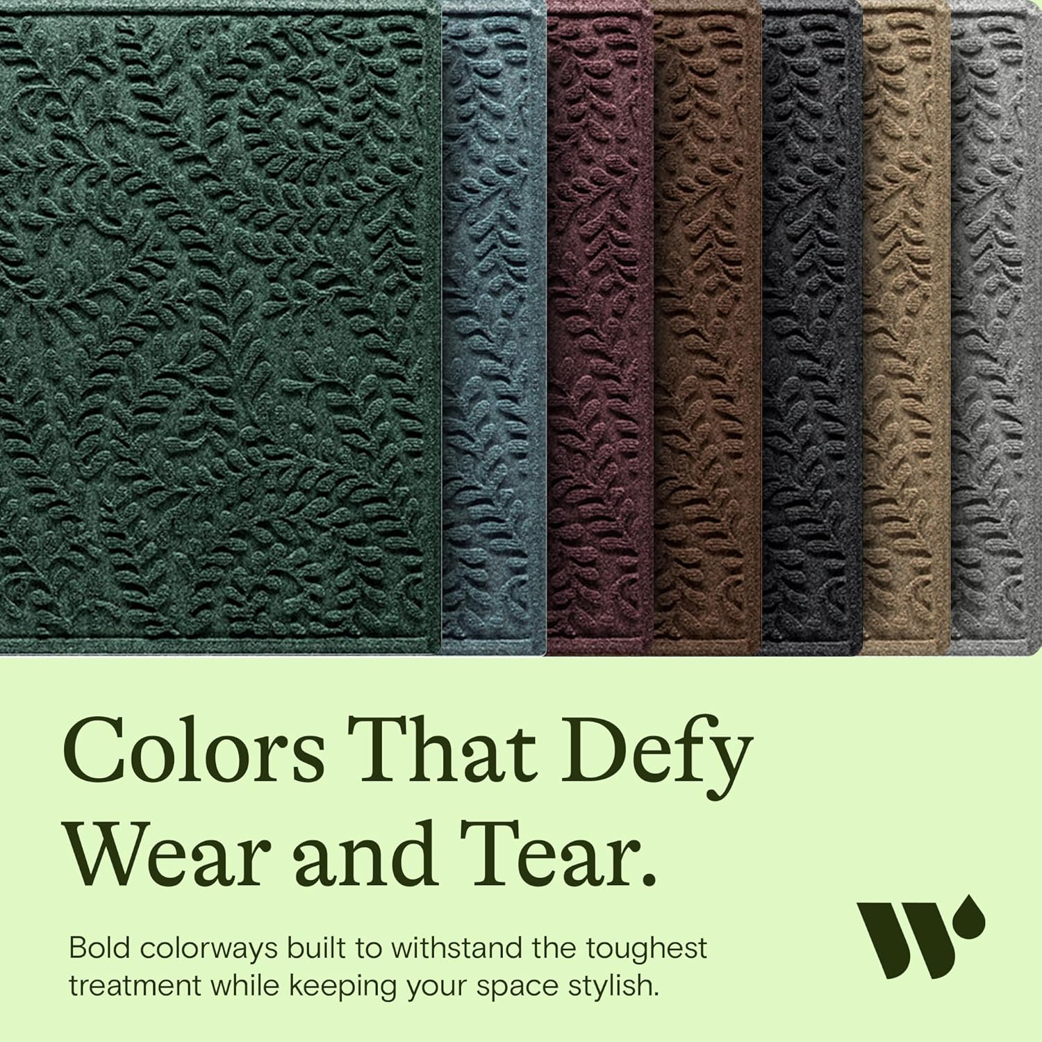 WaterHog Indoor/Outdoor Door Mat, 3' x 5', Made in USA, Durable & Skid-Resistant Front Door Rug, Decorative, Water-Trapping & Heavy-Duty Entryway Floor Mat For Your Home, Boxwood Collection, Evergreen
