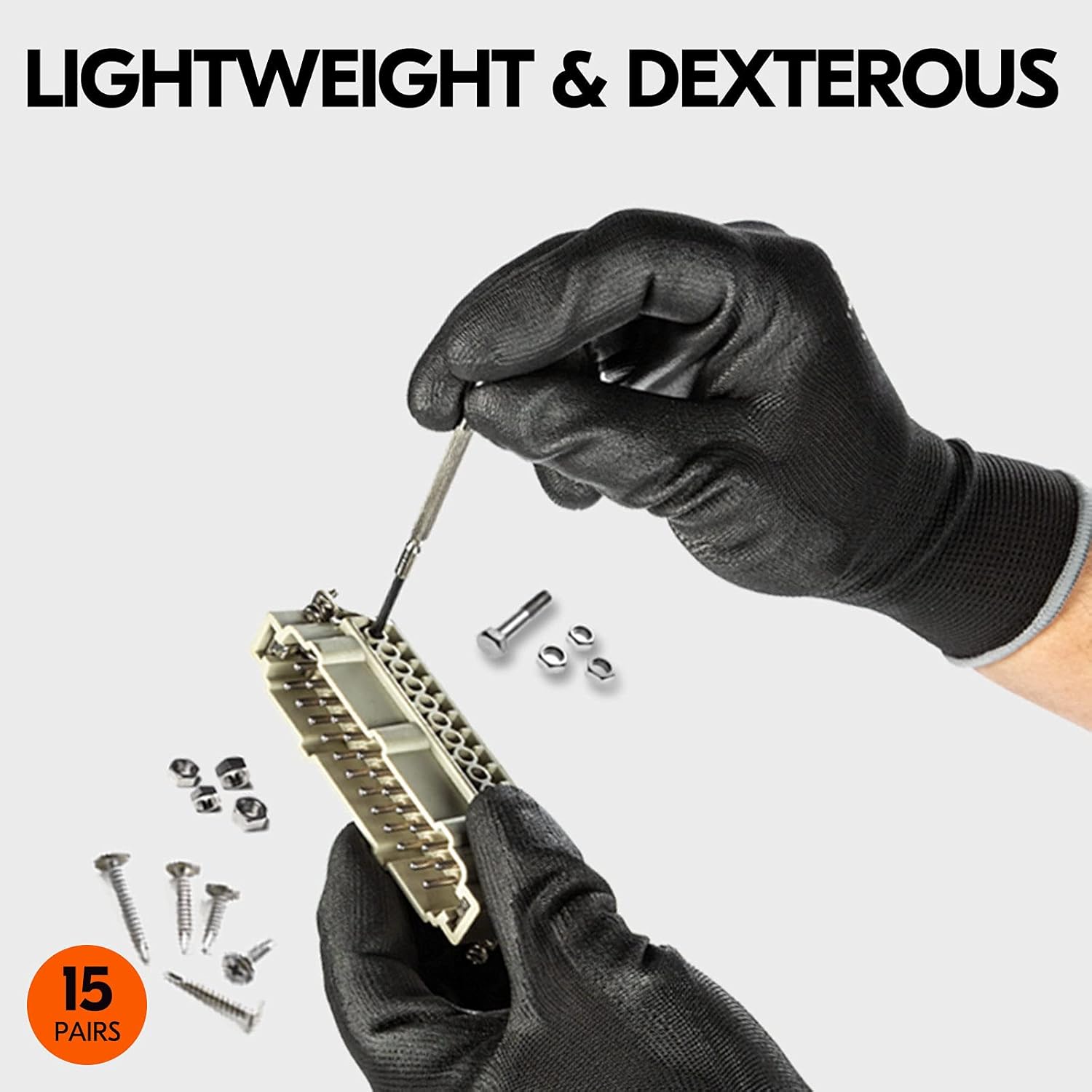 Vgo... 15-Pairs Safety Work Gloves, Gardening Gloves, Polyurethane Coated, Dipping Gloves, Latex Free (Size S, Black, PU2103)