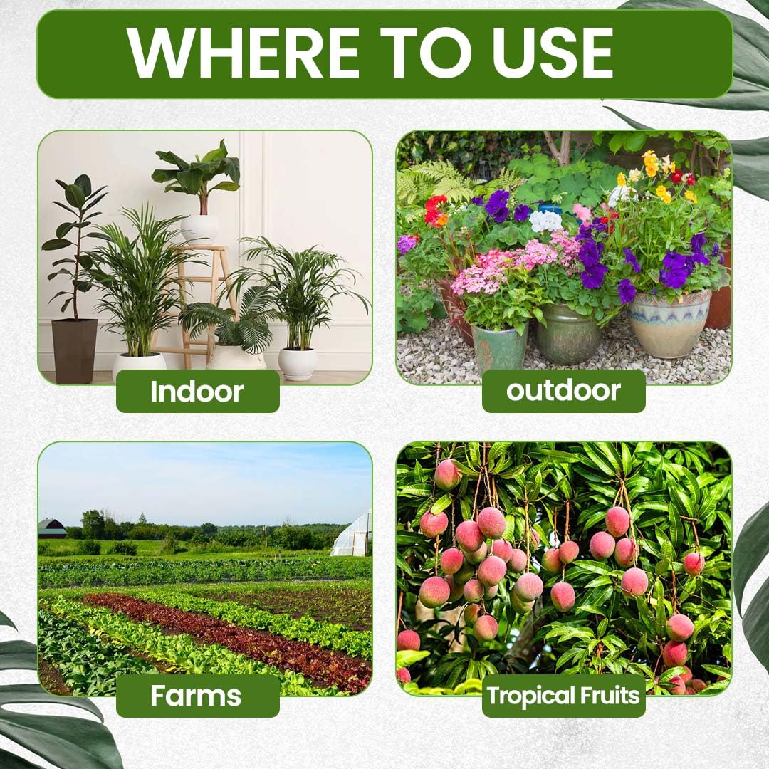 - Tailored for Citrus and Tropical Trees: Not all plants need the same care. Our fertilizer is crafted specifically for citrus and tropical fruit trees, like lemons, limes, mangoes, and avocados. Its unique nutrient blend addresses the exact needs of these trees, whether they’re potted indoors or growing outdoors, ensuring optimal fruit production year-round.