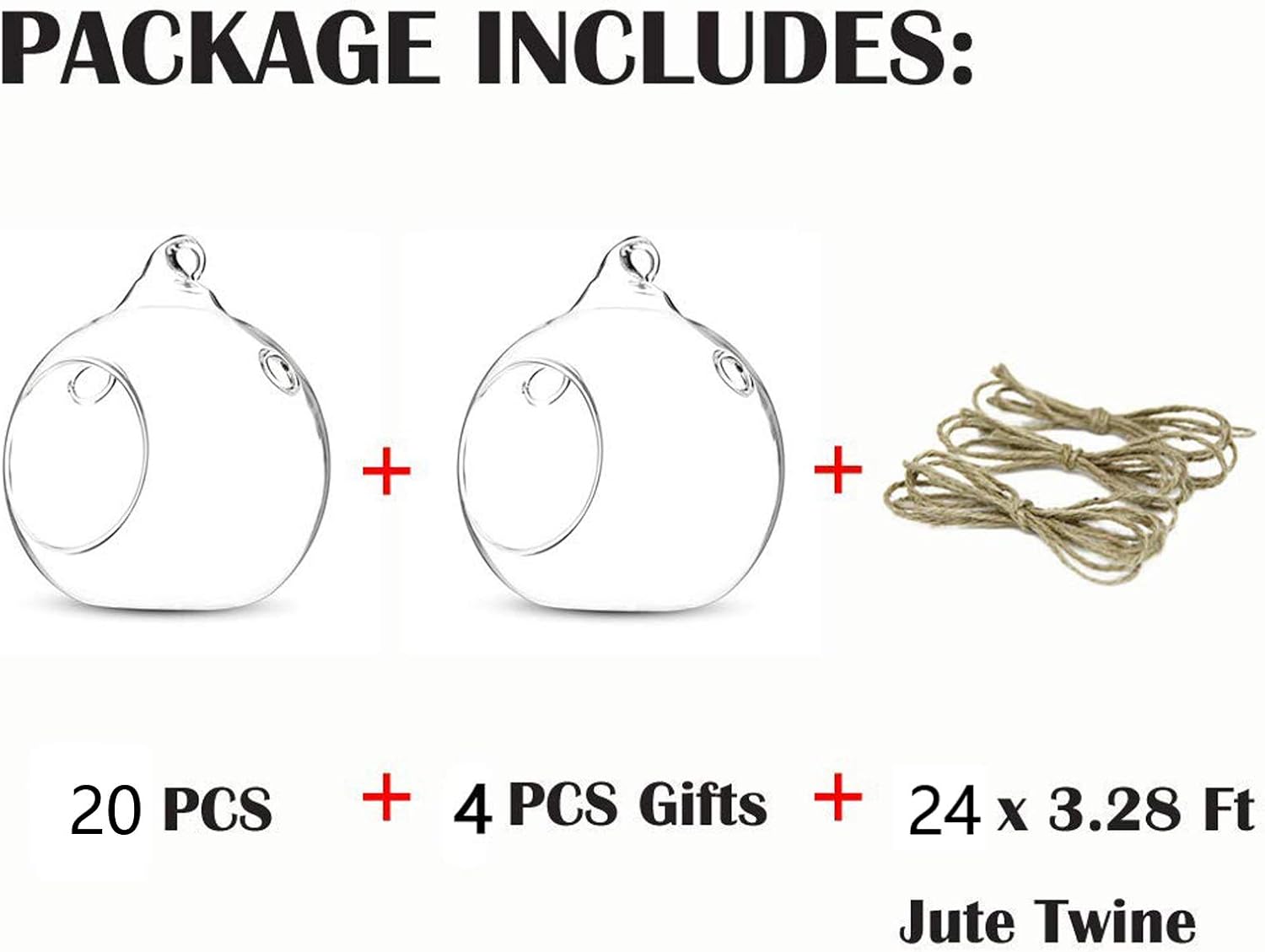 - PACKAGE INCLUDES: 20 Pcs/ Set and we offer additional 4 pcs for you in case some of them are confronted with violent transport( which is seldom incidents), so you will receive 24 pcs glass candle holder + 24 x 3.28 Ft jute twine strings. Candles are not included.