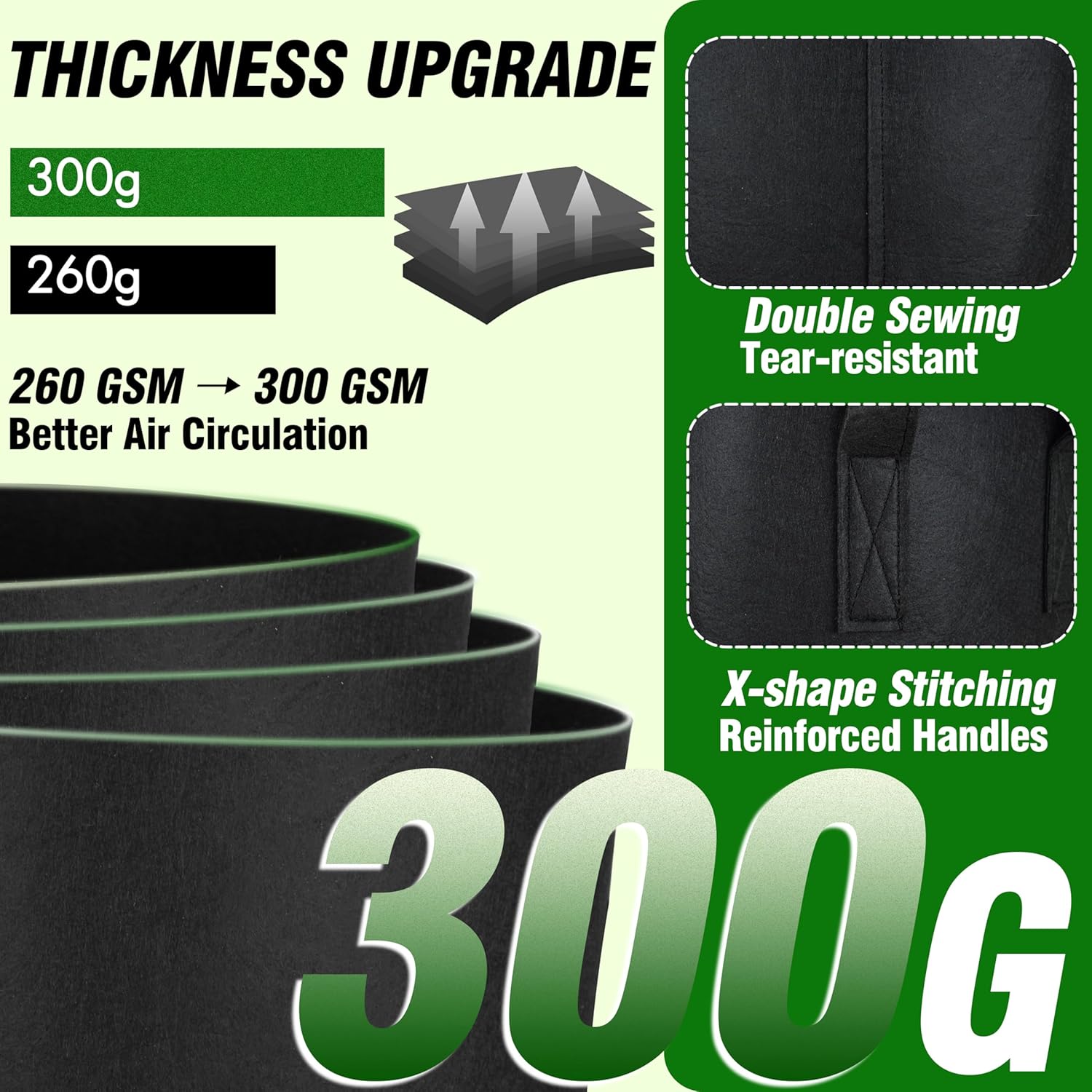 - Premium Quality Fabric: Made with 300g BPA-free polyester felt, these plant grow bags are safe for organic gardening and built to last