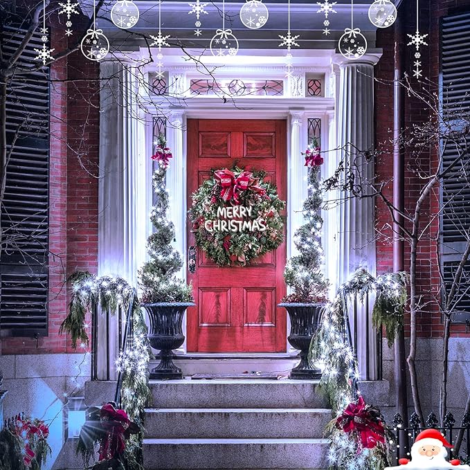 - White Christmas Lights: Still struggling to find power for your outdoor decorations? Our white Christmas lights are solar powered and can be used outdoors without being restricted to an outlet. When fully charged, the solar panel can work for 8-12 hours. While supporting environmental protection, it can save you electricity bills. The high-efficiency solar panel and 200 high-quality lamp beads will work together to emit a stable and bright light that will accompany you all night