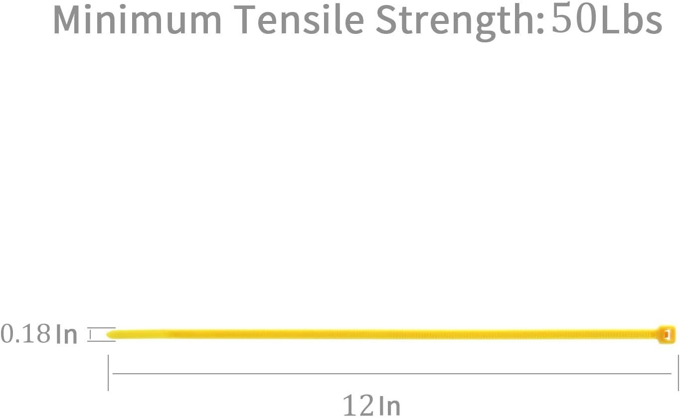 XINGO 100PCS Cable Zip Ties Heavy Duty, Premium Nylon Plastic Wire Ties with 50 Pounds Tensile Strength, Self-Locking Black Nylon Zip Ties for Indoor and Outdoor (12 inch, Yellow)