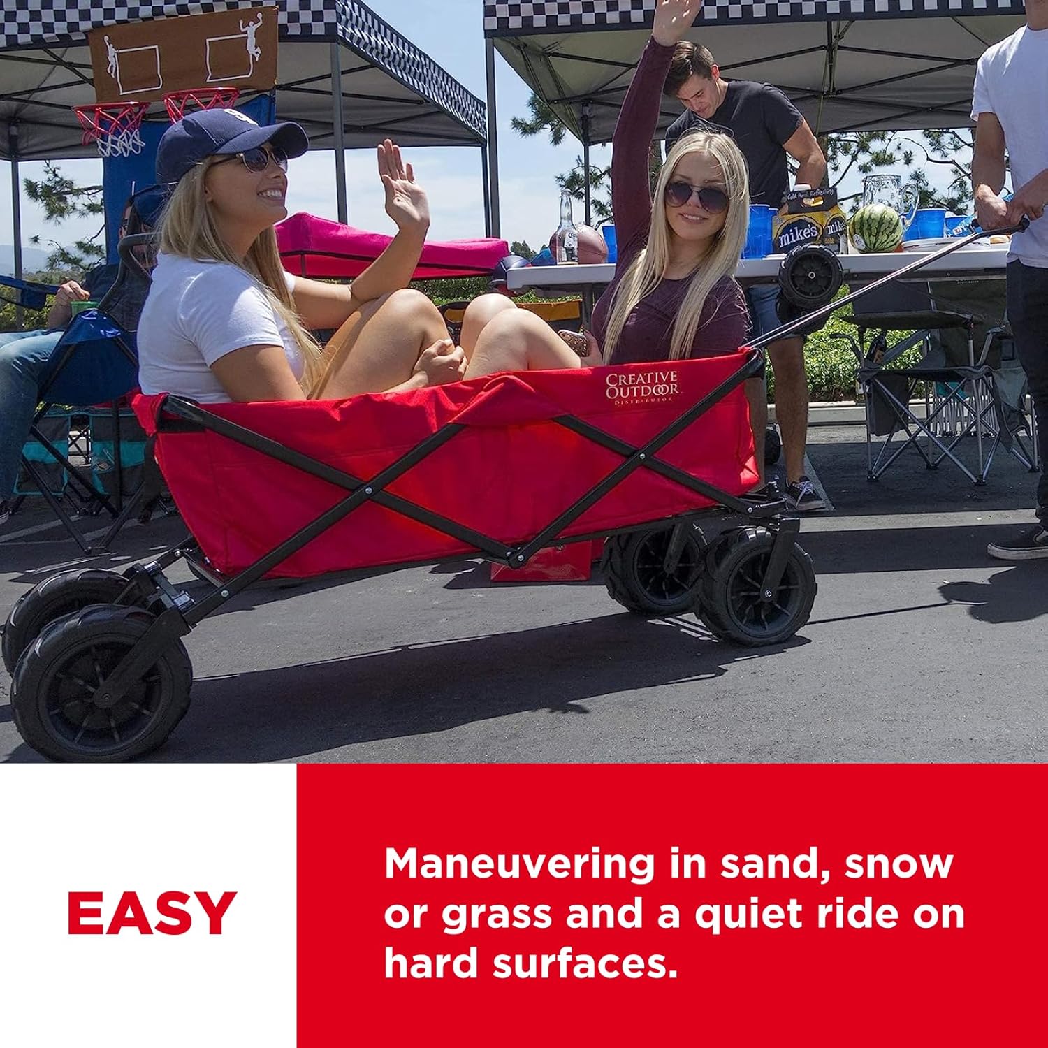 Creative Outdoor Wagon for Kids Push Pull Collapsible Stroller Giant All-Terrain Folding Cart | XXXL Monster Series Wagons | Outdoor Garden & Tailgate | Red