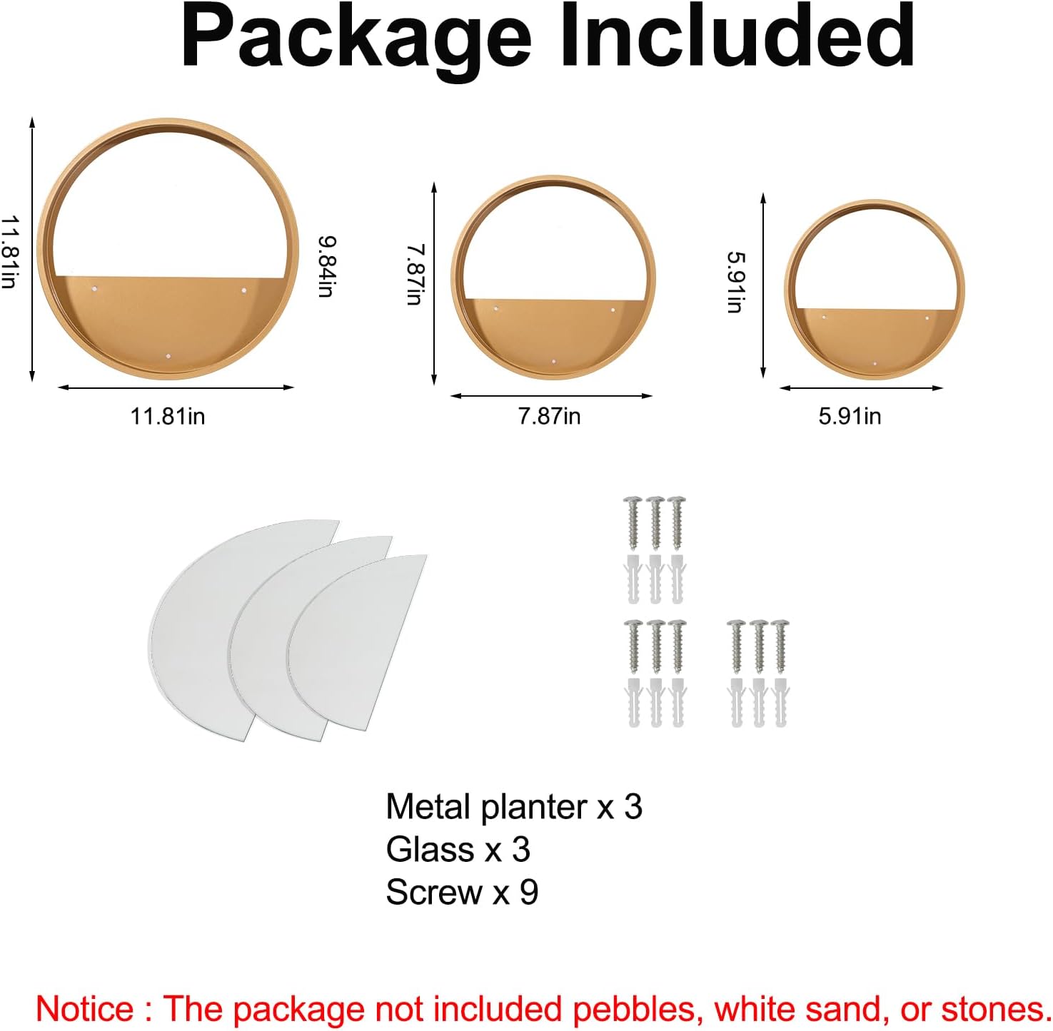 3 Pack Set Wall Planters,Modern Round Glass Wall Planter Succulent Planter Circle Iron Hanging Planter Vase for Herb,Small Cactus Perfect for Balcony, Room and Patio Decor (Gold)