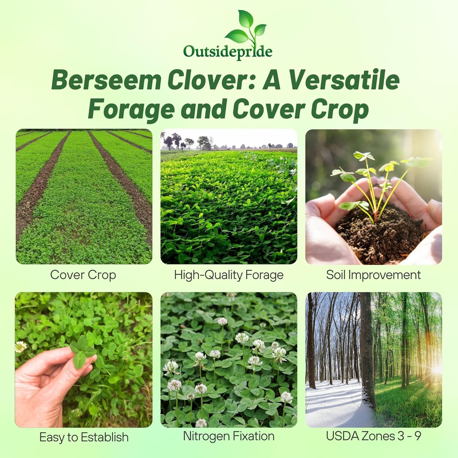 Outsidepride Annual Berseem Clover Seeds for Lawn - 10 lbs. High-Yield, Fast-Growing Clover Cover Crop Seeds for Food Plots, Cattle Forage & Nitrogen-Rich – Ideal for Pastures & Soil Improvement