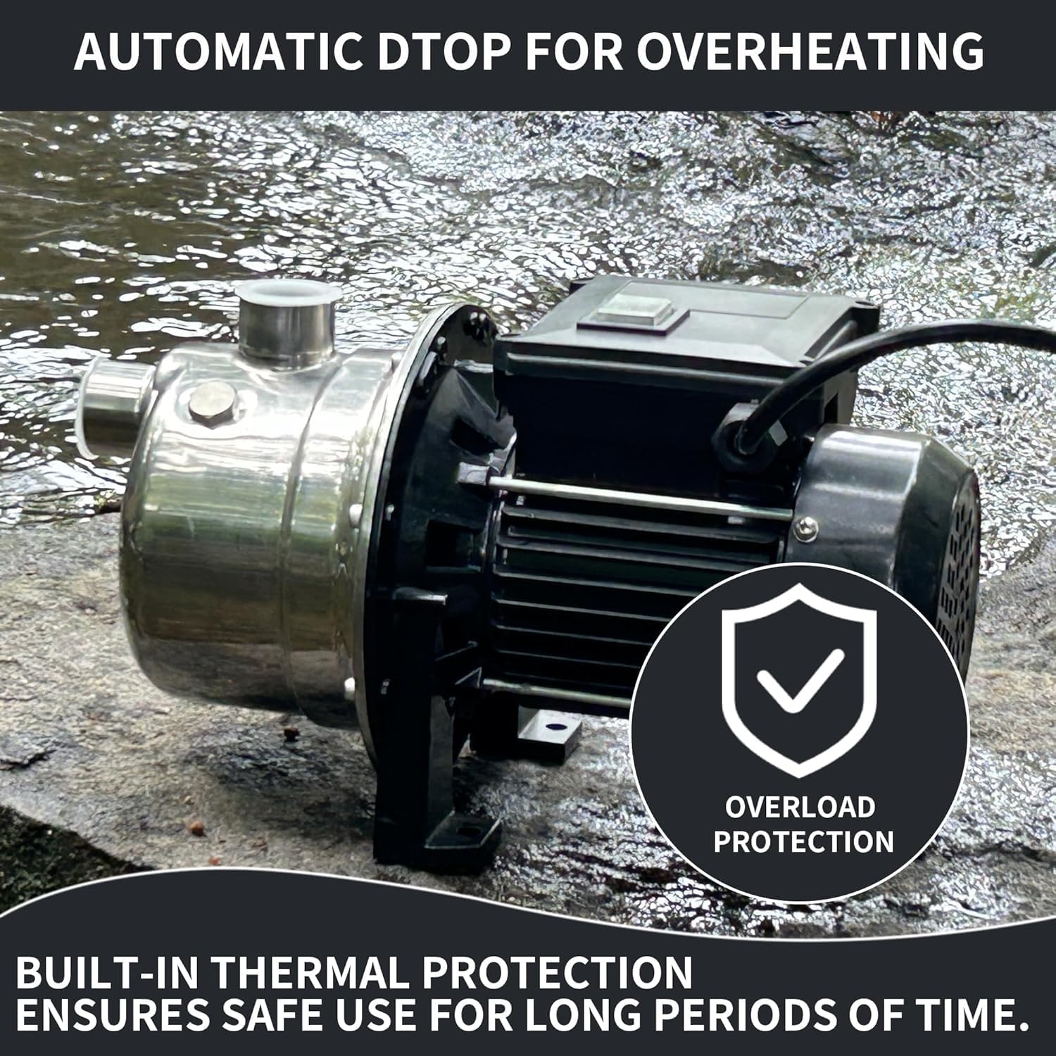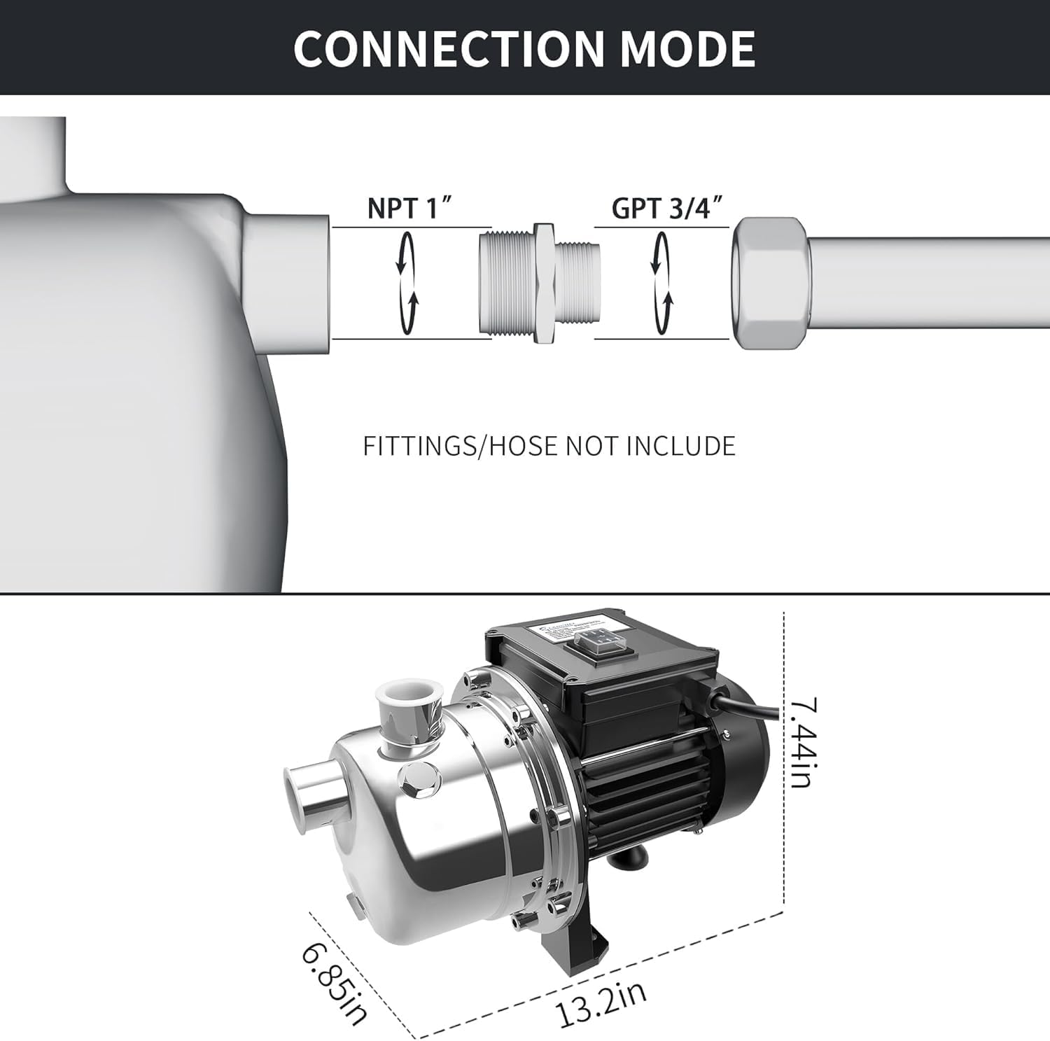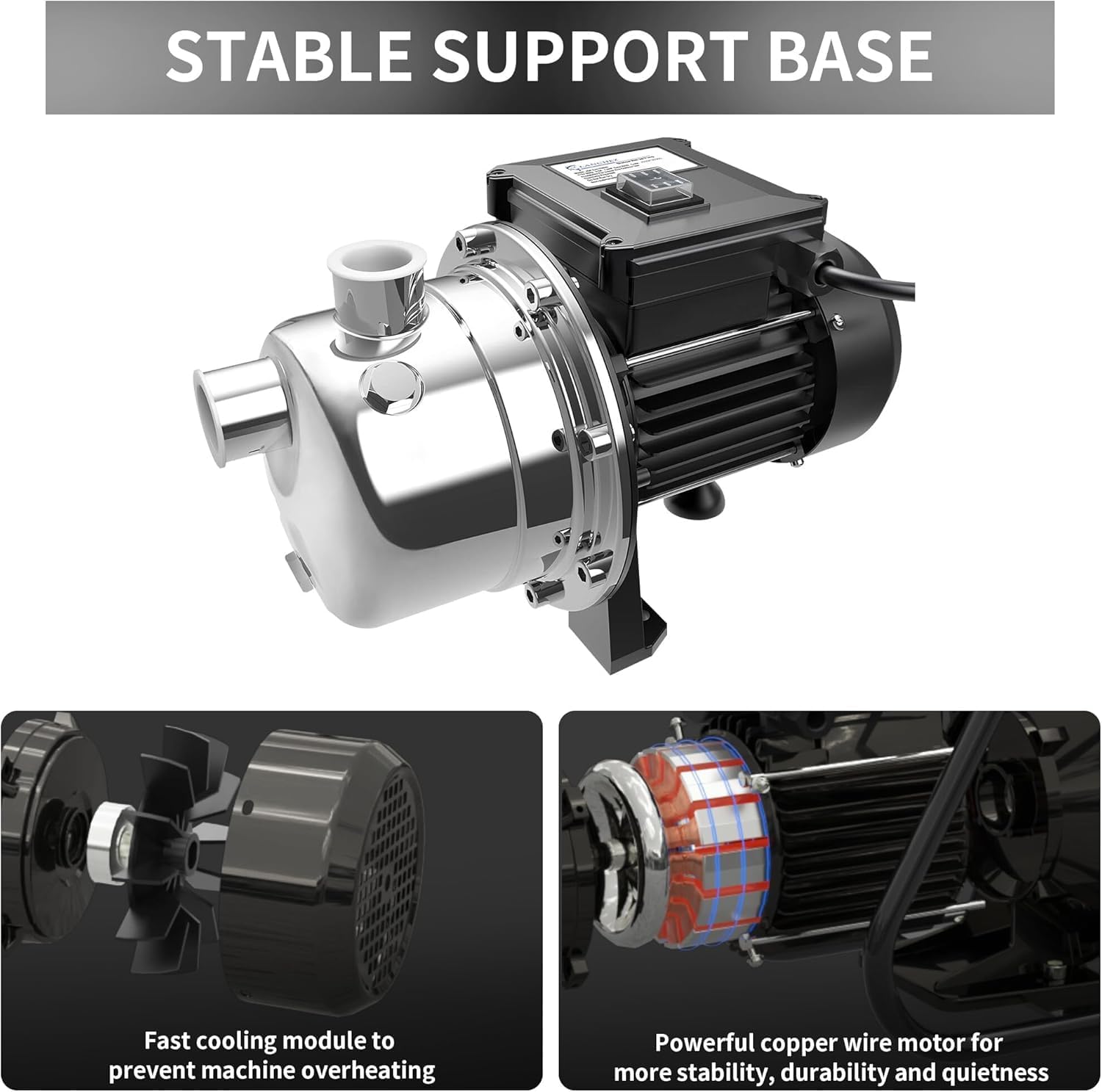 - 【Strong and Reliable Performance】The shallow well pump with 1/2 HP motor. Maximum flow rate up to 960 GPH and Max lift water up to 125 feet. Corrosion-resistant stainless steel construction extends product life and is easy to clean