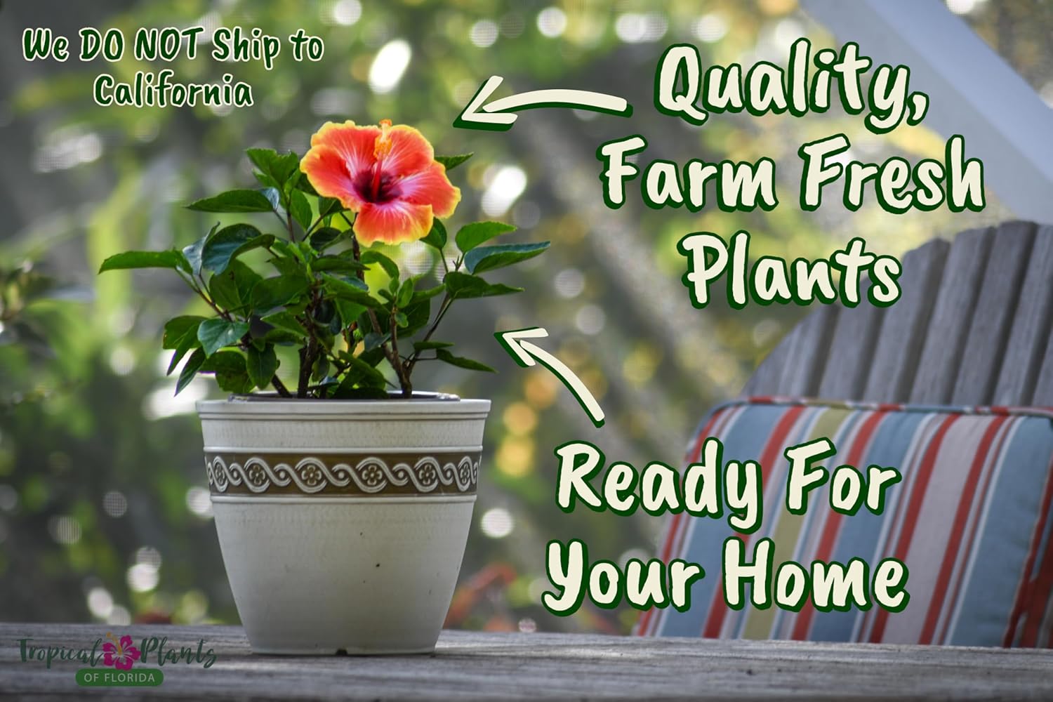 Fiesta Hibiscus Bush - Live Hibiscus Flowering Plant - Tropical Flower Plant - 1 Gallon Planter - Overall Height 10" to 14" - Tropical Plants of Florida (Plant Only)