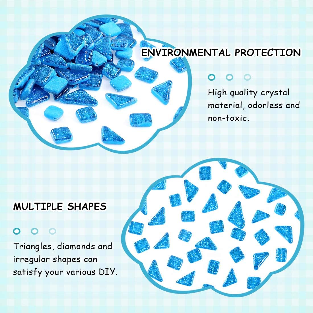 Swpeet 1 Pound Seablue Shine Crystal Series Mosaic Tiles Assortment Kit, Square and Triangle Genuine Mosaic Tiles Glitter Crystal Mosaic Perfect for Home Decoration Crafts - Mosaic Tiles V