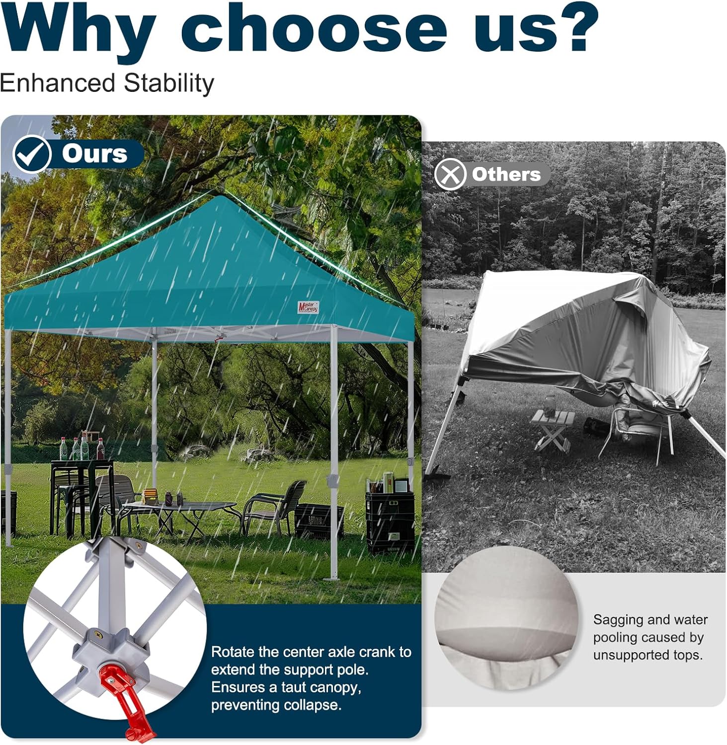 - ✅Large Space: 10 x 10 Pop Up Canopy with straight legs provides a true 100 square feet shade. Big enough for about 6-10 people to sit under it. Center height is 132 inch. Suitable for market stalls, parties, picnics or any outdoor events. MASTERCANOPY commercial canopy tent is suitable for both sunny and rainy days.