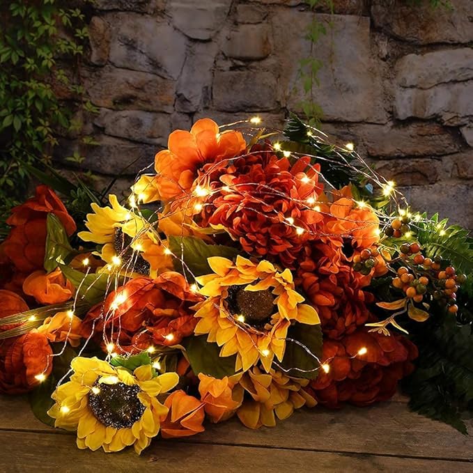 - | Bendable Silver Wire Light | - This lights are fully adjustable designed. With premium silver coated wires, you can reshape or twist it into your desired pattern or wrap them around outdoor tree truck, patio plant, backyard flowers or shrubs. Also a gorgeous gift choice for Christmas, kids’ birthday, friends’ new house, let them create endless magic by DIY your own art work with this decorative solar fairy string lights.