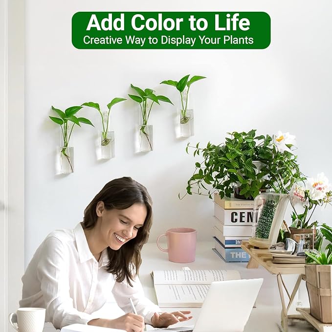 - Stylish Glass Cylinder Planter Design: These elegant glass propagation stations feature a sleek, modern cylinder shape, perfect for displaying air plants, cuttings, flower or small hydroponic plants. Displays them in your bathroom, livingroom, indoor garden or balcony. Make your home greener and more vibrant. Their minimalist look adds a chic touch to any home, office, or garden decor.