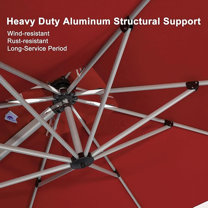 - All-aluminum umbrella pole and 8 heavy-duty ribs, anti-oxidation spray painted, maintain a long period life