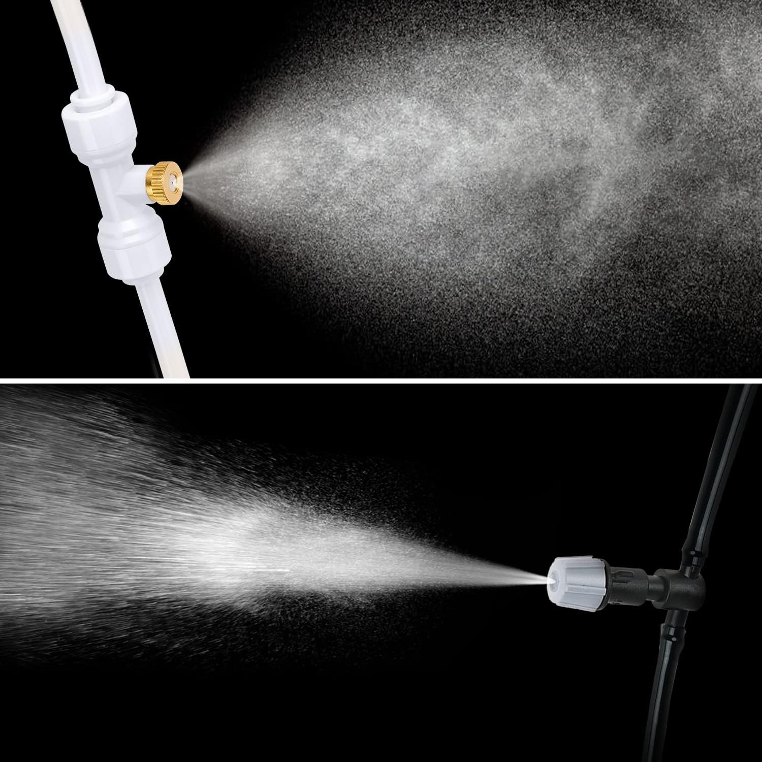 - Brass Mist Nozzles: Made of brass material, anti-rust and mist effectively. Mister tee connector is made of sturdy recyclable plastic material - good sealing and leakproof