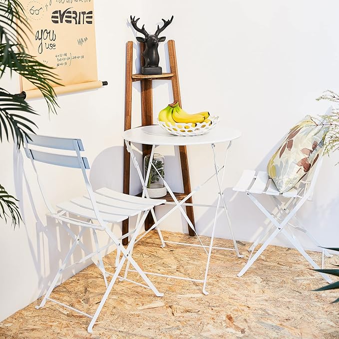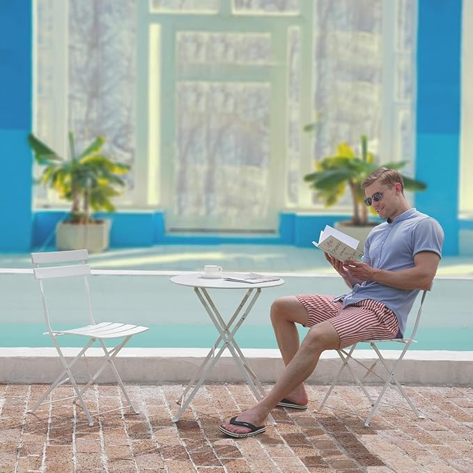 Grand patio 3-Piece Folding Bistro Set, 2 Chairs and 1 Table, Weather-Resistant Outdoor/Indoor Conversation Set for Patio, Yard, Garden-White