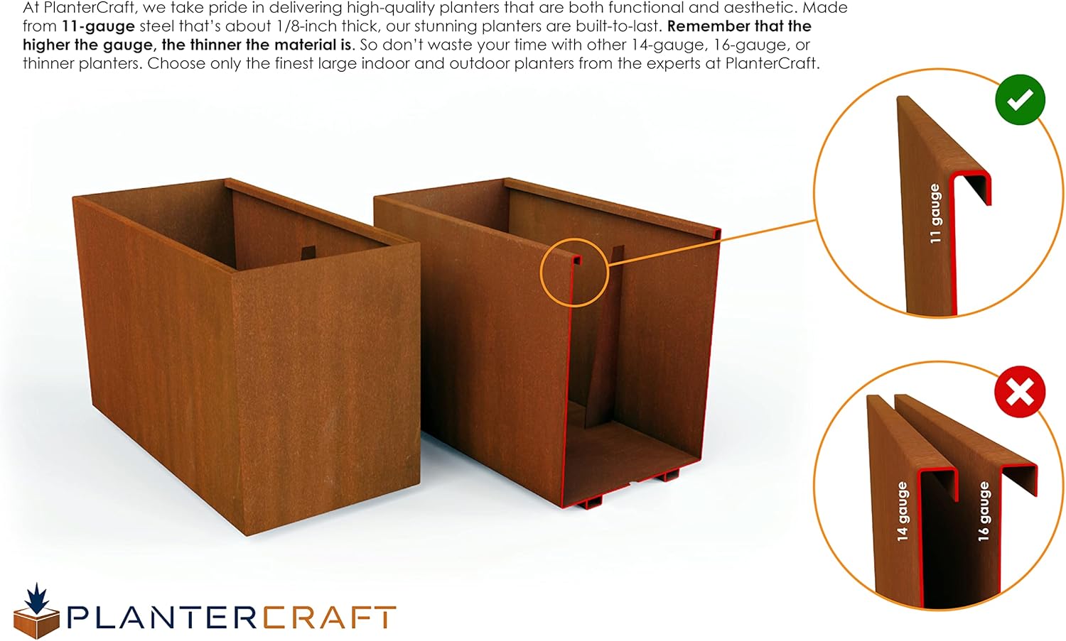 - COMMERCIAL-GRADE DURABILITY: Expertly crafted in the USA from thick, heavy-duty 11-gauge Corten steel, this large outdoor planter box is built to withstand the elements for years without cracking, chipping, or fading like plastic or fiberglass. Ideal for both residential landscapes and high-traffic commercial projects.