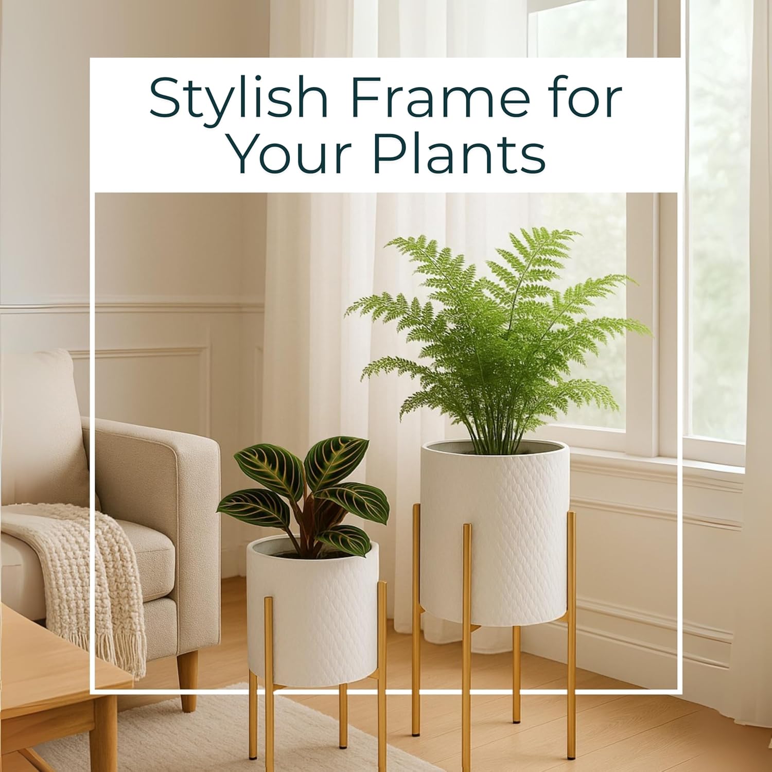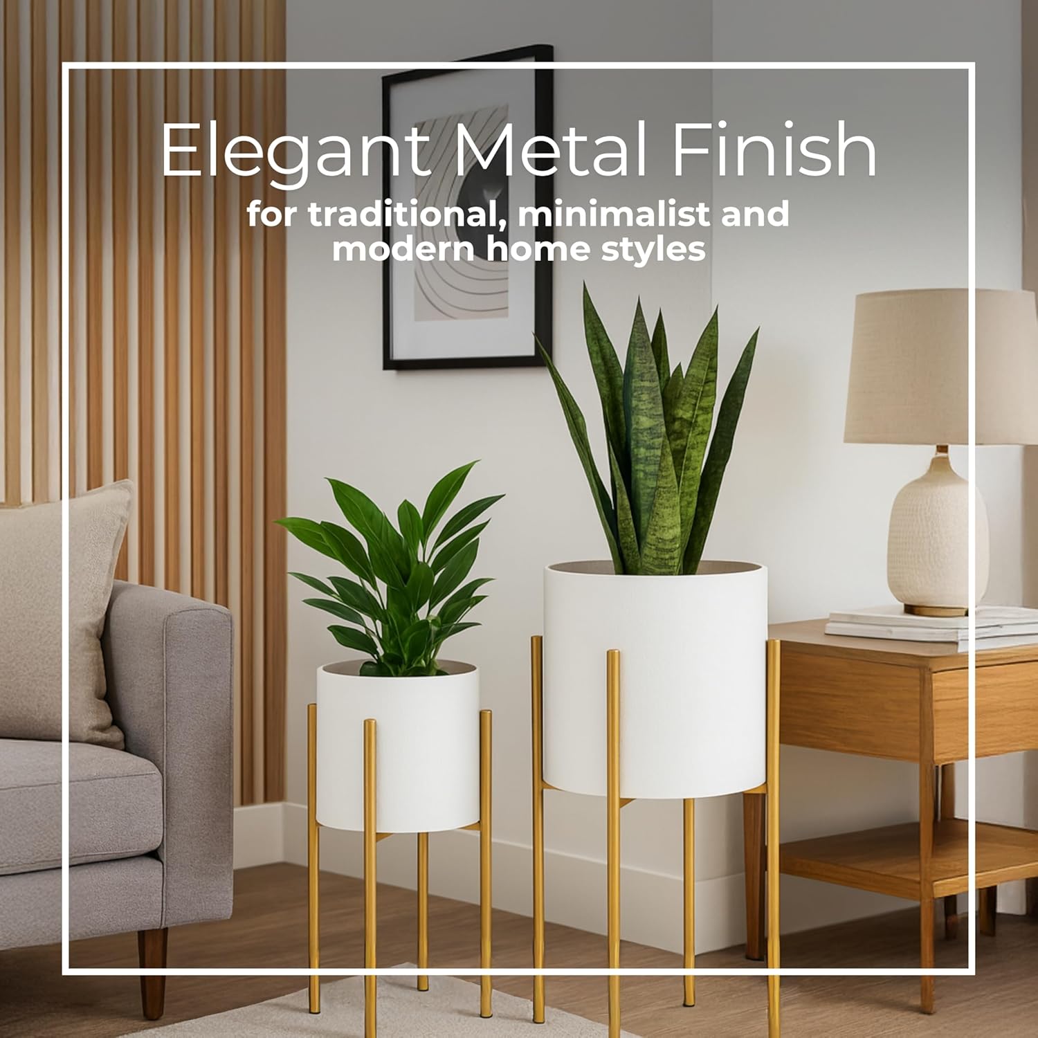 - Premium Metal Construction: Crafted from durable, high-quality iron with a smooth powder-coated finish, these indoor pots for plants resist rust and wear. The sturdy stands provide stability while elevating plants for a more eye-catching display.