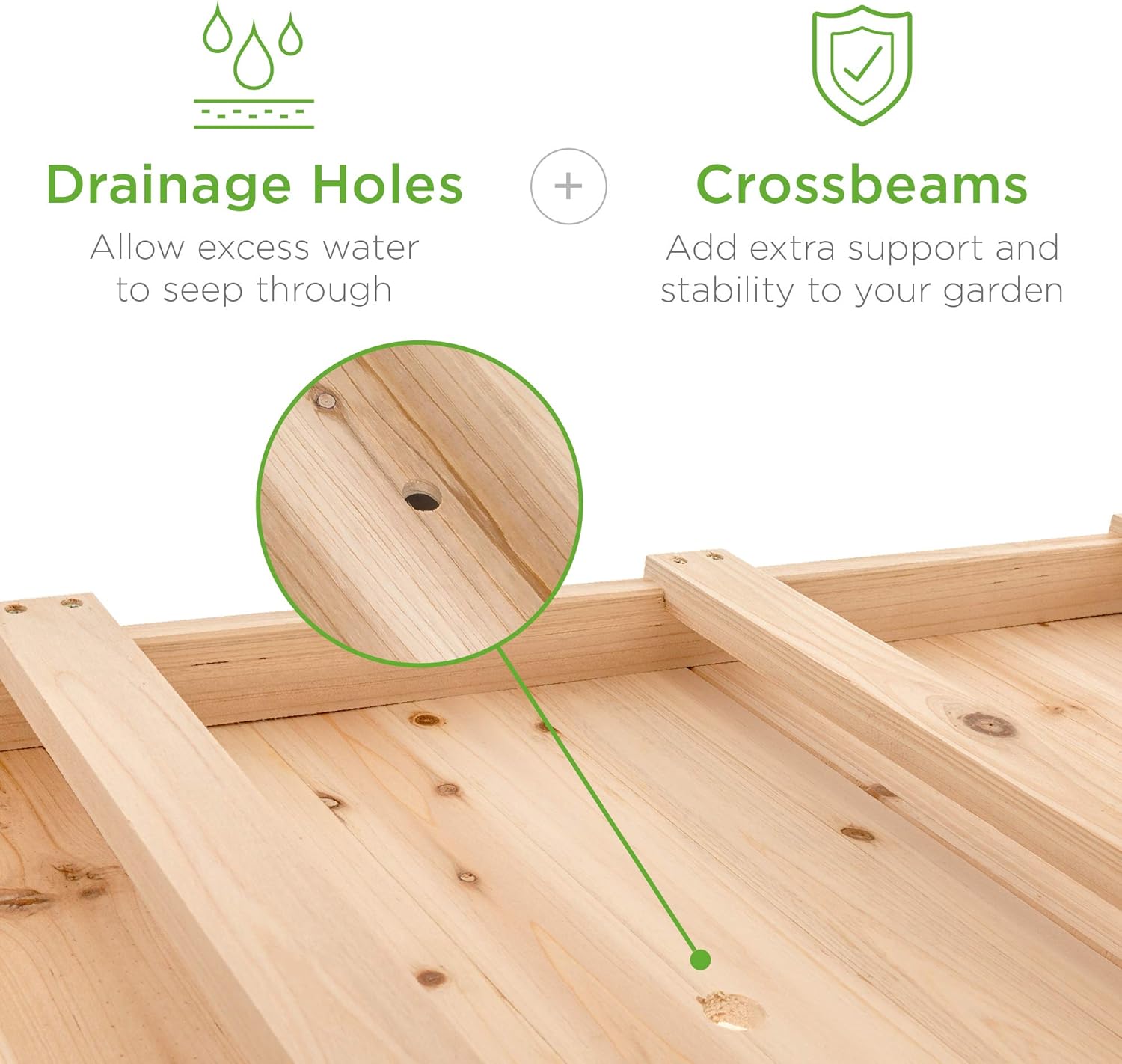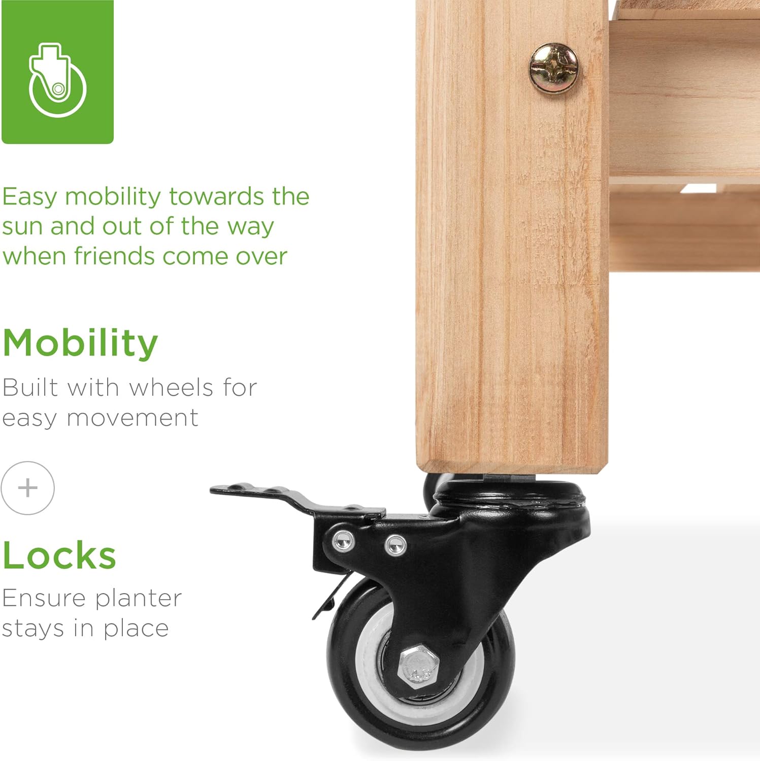 Best Choice Products Raised Garden Bed 48x24x32-inch Mobile Elevated Wood Planter w/Lockable Wheels, Storage Shelf, Protective Liner - Natural
