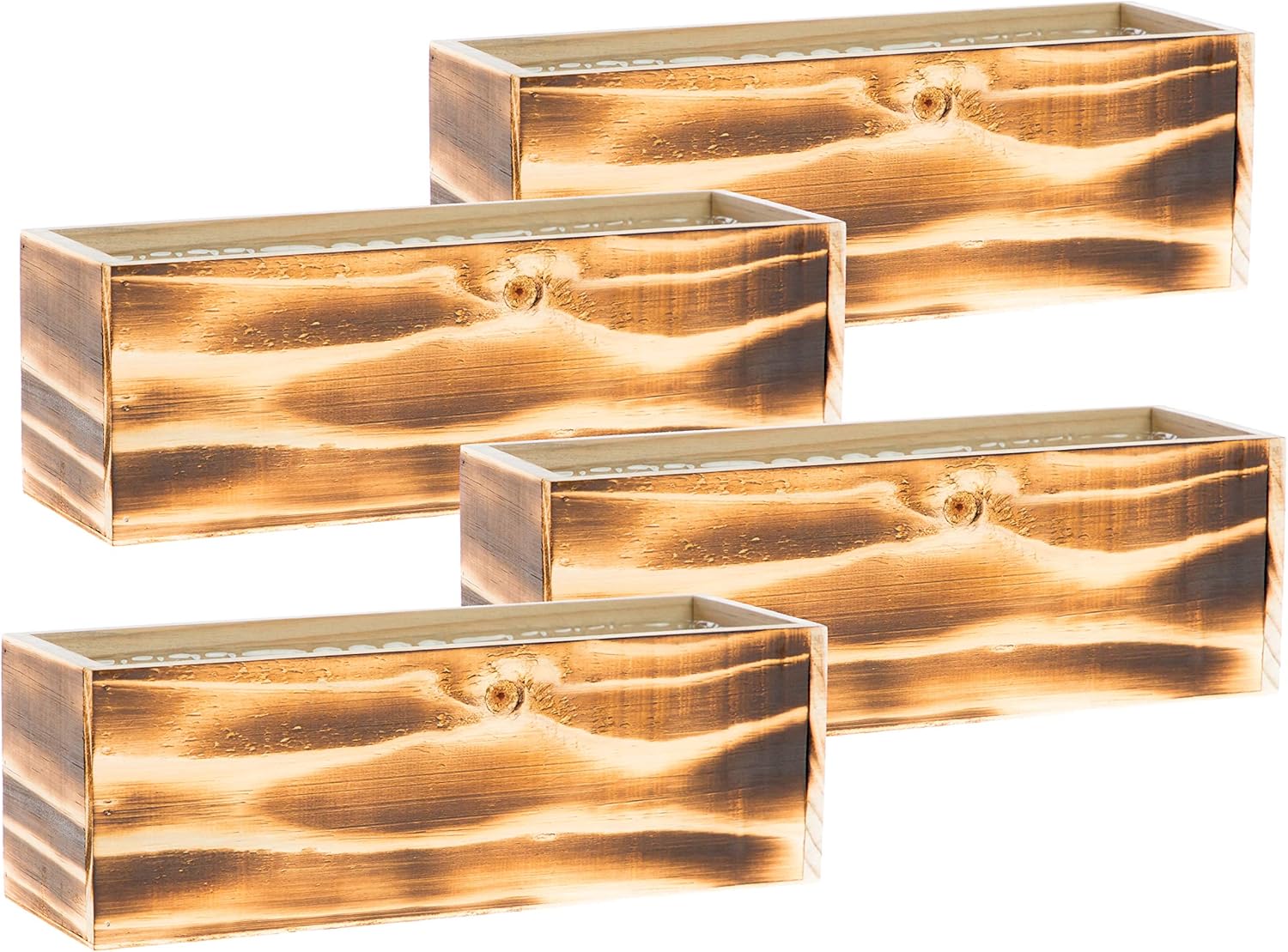 Wooden Planter Box, Rustic Barn Wood/Whitewash with Plastic Liner l Garden Decor l Restaurant and Wedding Decorations l Table Centerpiece (12x4 Set of 4, Burned Wood)