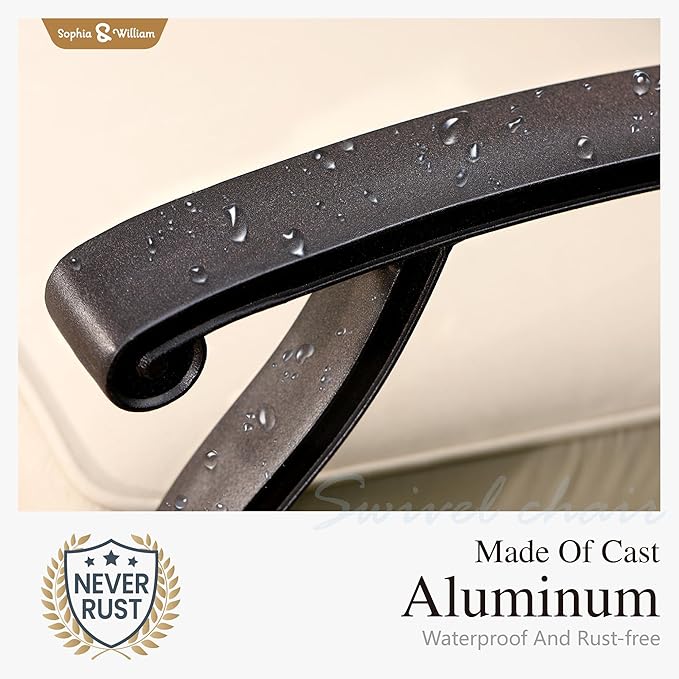 Sophia & William Cast Aluminum Patio Bar Chairs Set of 2, Bar Height Swivel Outdoor Bar Stools Chairs, Counter Height Outdoor Barstools, Brown, Load Capacity: 350 lbs