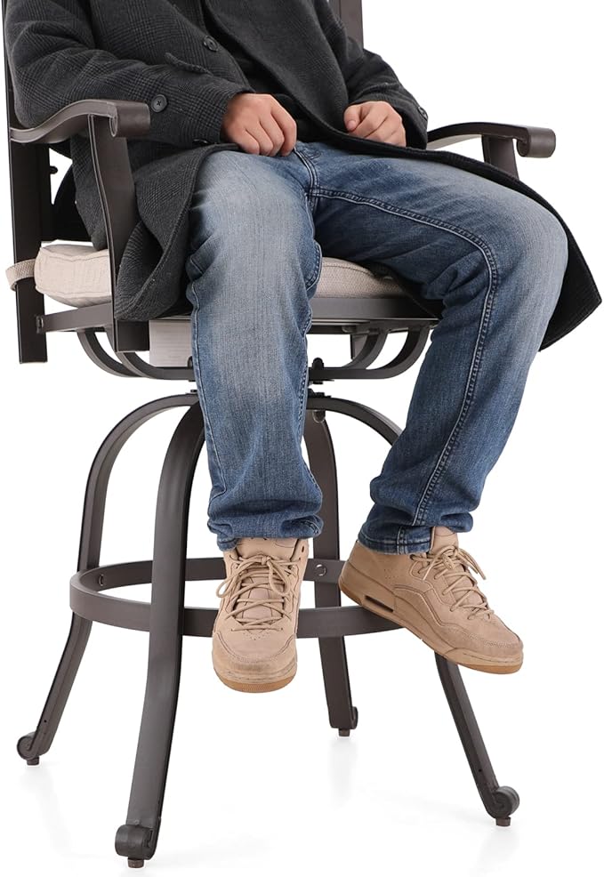 Sophia & William 3 Pieces Cast Aluminum Patio Bar Set, Round Outdoor Bar Table and 2 Swivel Bar Counter Height Chairs Set, Modern Patio Pub Bistro Set with Outdoor Stools