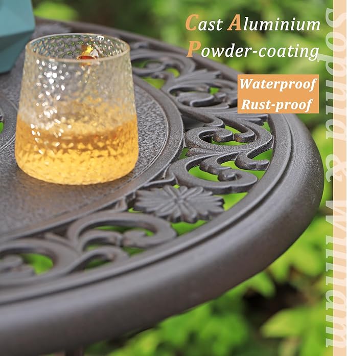 - Beautiful Appearance: The overall structure of the outdoor bistro set is formed by mold pouring without any obvious welding traces, which makes it look flawless, nice and elegant