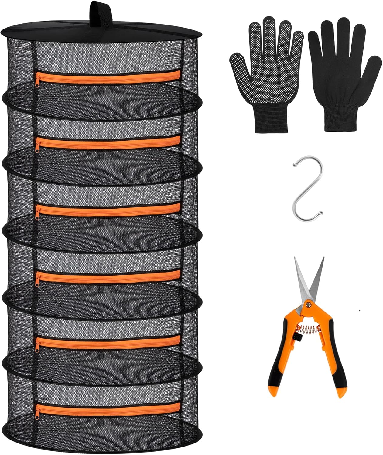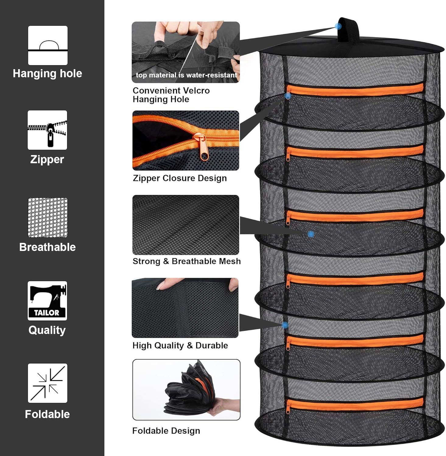 Desy & Feeci Herb Drying Rack-2ft Diameter 6 Layer Folding Mesh Hanging Basket Dryer Net with Zippers for Seeds Flowers Buds Plants Garden Outdoor Bumper Harvest(D24xH47 inch)