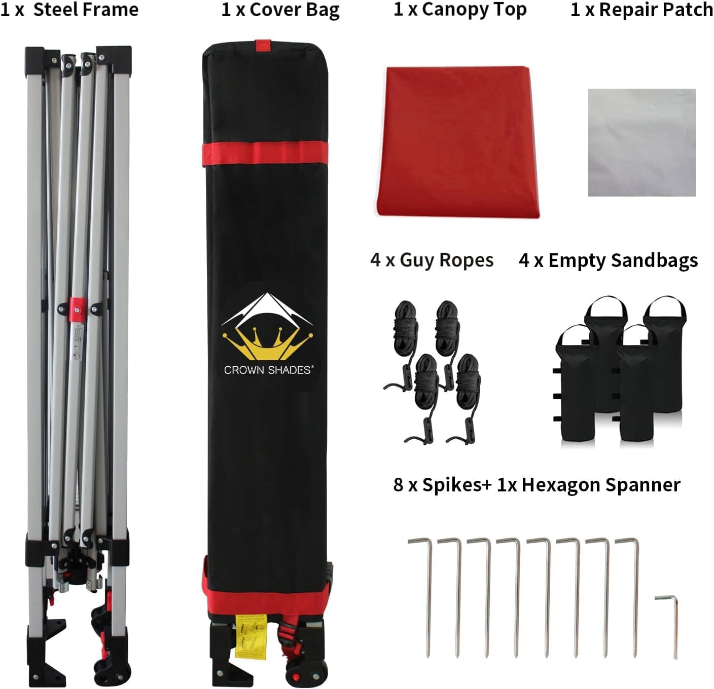 CROWN SHADES 10x10 Pop Up Canopy - Beach Tent with One Push Setup - Easy Outdoor Sun Shade for Events, Parties, Camping - Gazebo with STO-N-Go Cover Bag, Silver Coated Top, Red