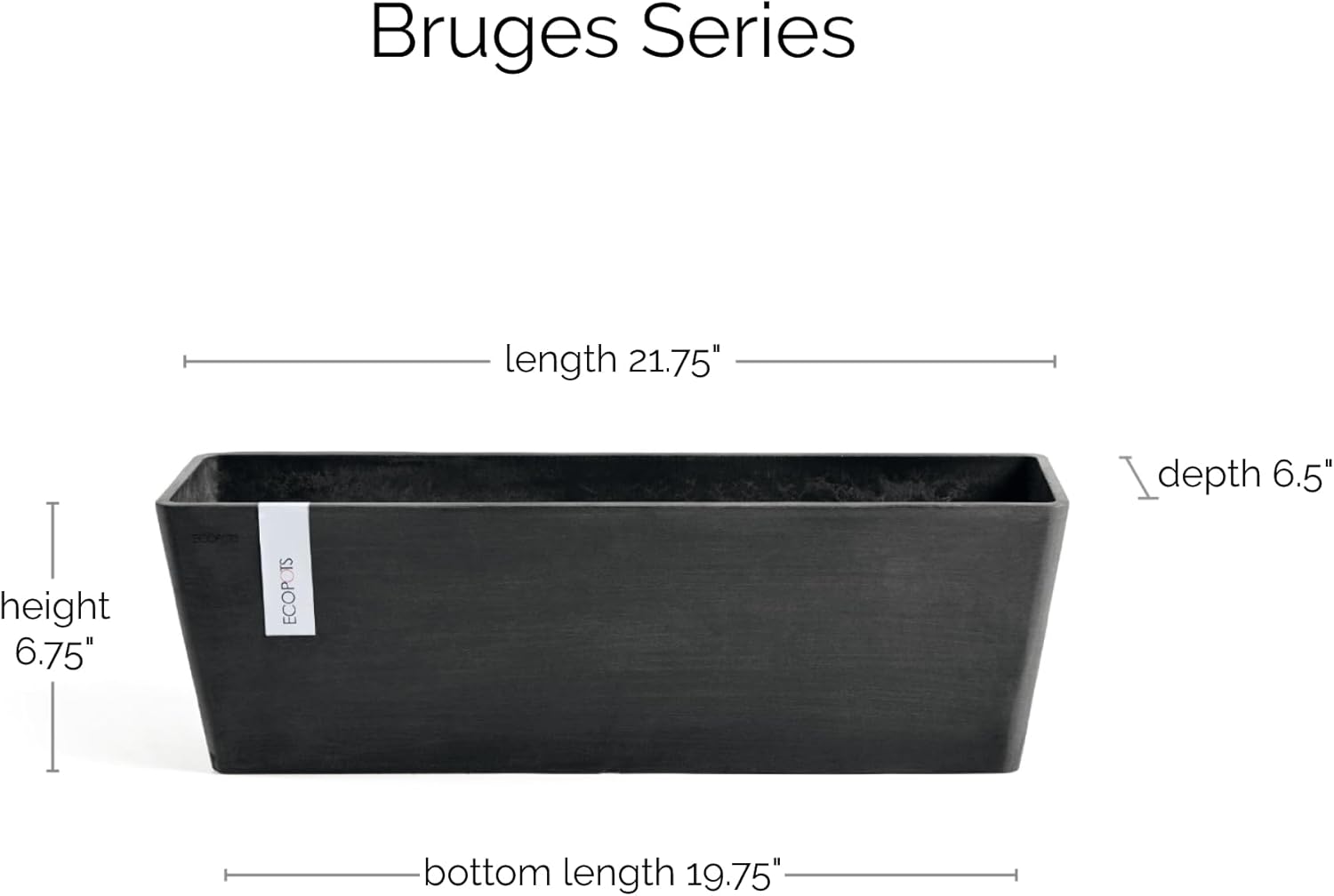 Ecopots Bruges Durable Modern Rectangular Indoor/Outdoor Recycled-Based Composite Flower Pot Planter, Dark Grey, 21.5"