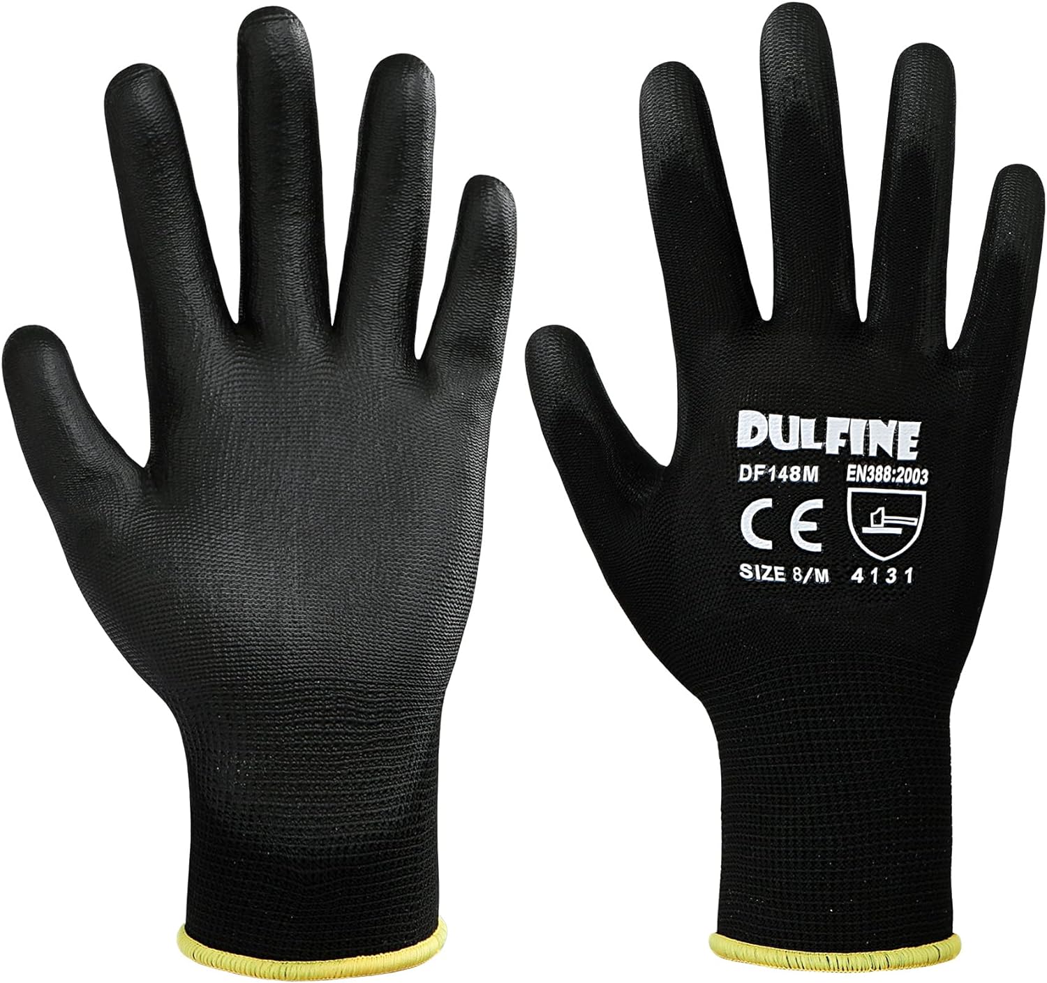 DULFINE Ultra-Thin PU Coated Work Gloves-12 Pairs,Excellent Grip,Nylon Shell Black Polyurethane Coated Safety Work Gloves, Knit Wrist Cuff,Ideal for Light Duty Work. (Large)