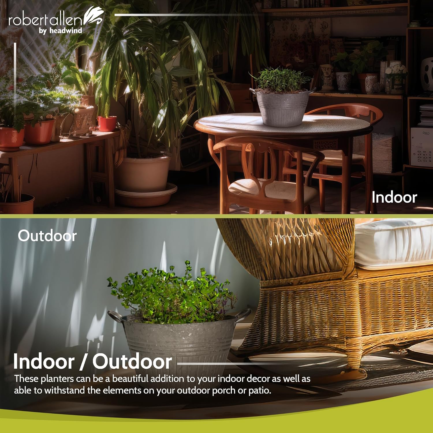 Headwind Round Galvanized Tub Planter with Handles – 14 Inch Lightweight Metal Planter with Drainage Hole – Galvanized Steel Tub for Plants - Metal Flower Pot by Robert Allen