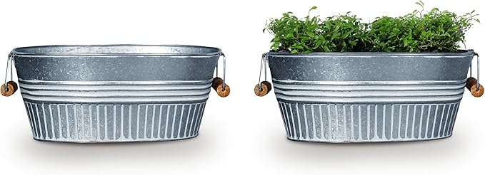 - ✅14-inch metal planter galvanized tub in White Wash designed to add warmth & character to any space. Its built-in handles & weathered finish make it both stylish & easy to move—perfect for farmhouse, industrial, or garden-inspired décor.