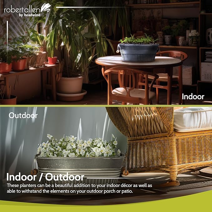 - 🏆Unlike generic planters , Headwind galvanized tub large are known for their weather-resistant finishes, premium craftsmanship, & timeless design. This decorative metal bucket planter combines durability with aesthetic appeal.
