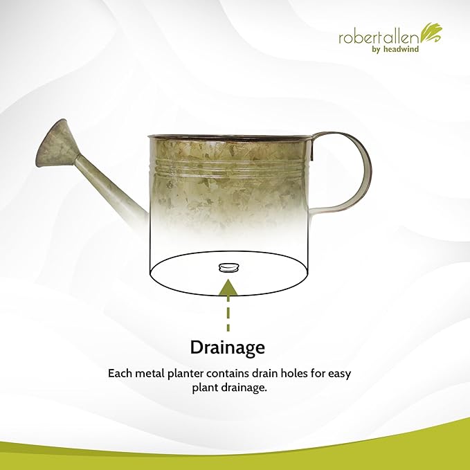 - 🪙Each flowering watering can is made from galvanized metal, ensuring long-lasting durability and resistance to rust. The 6 Inches size offers ample space for root growth while remaining compact enough for shelves, counters, or patios.