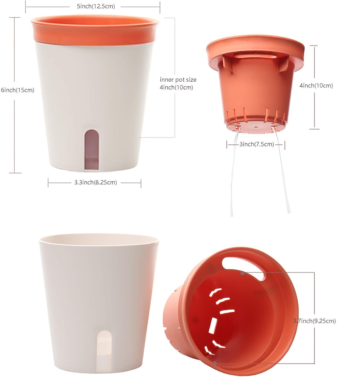 - 2, With a flower pot with a visible water level window, you can easily observe when and how much water is poured, just pour water directly from the water inlet.