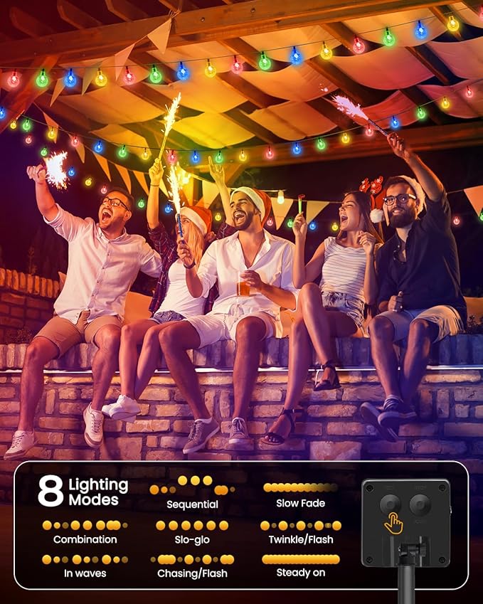 - 【IP65 Waterproof & Easy to Install】The outdoor string lights can withstand all kinds of weather, including rain and snow; No wiring, no electricity cost. Put on wall, window, door, floor, ceiling, grass, Christmas tree or building, adding perfect atmosphere for your home and garden.